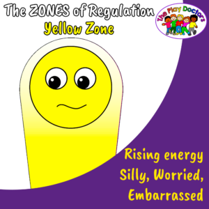 • 🟡 Yellow Zone – describes when that energy starts to get higher, and our feelings get a little bigger. We might be feeling worried, embarrassed, silly, excited, frustrated, or fidgety.